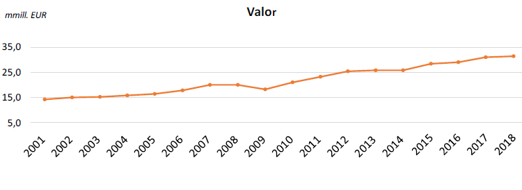 Reducción del volumen de las importaciones con respecto a 2017 en Rusia (reducción del 8,9 %), Países Bajos (reducción del 4,4 %), Bélgica (reducción del 2,6 %) y Japón (reducción del 5,5 %). El valor de las importaciones de estos cuatro países aumenta en un 1,7 %, un 1,3 %, un 2,6 % y un 0,6 %, respectivamente.