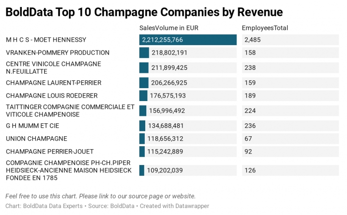 2021 ya está aquí. Probablemente nos encontramos en una fechas del año en que más botellas de espumoso se descorchan. Por este motivo, desde la firma BoldData nos revelan cuales son las mayores empresas de champán por ingresos.