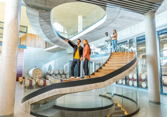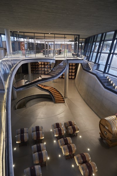 Maquinaria, depósitos de fermentación y barricas, así como el propio edificio, con su ubicación y disposición sobre el terreno, sus materiales y los sistemas que la integran convergen hacia un único objetivo: la elaboración de vinos singulares que expresen fielmente la esencia de esta región vitivinícola y propicien momentos de disfrute entre amigos.