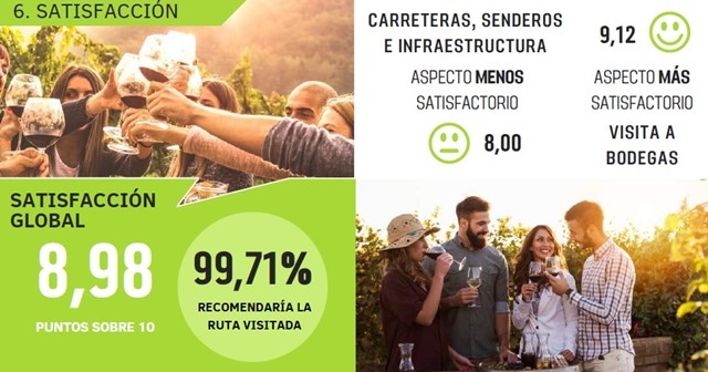 Del análisis de las motivaciones y el resto de apartados relacionados, el informe subraya la constatación de que el enoturismo se ha convertido ya en una opción asentada y ampliamente contemplada como opción al 'sol y playa'. Una opción que, según esos datos, continuará escalando posiciones, pues la satisfacción de los enoturistas que visitan las Rutas del Vino de España es cada vez más alta. En esta ocasión, el informe la sitúa en 8,98 puntos sobre diez.