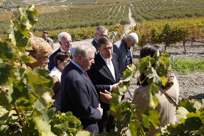 El Comisario de Agricultura de la Unión Europea Janusz Wojciechowski, junto a una delegación de autoridades europeas, se acercó en primera persona a varias bodegas de la región para conocer el proceso de elaboración del vino de Montilla-Moriles, y en especial del vino Pedro Ximénez.