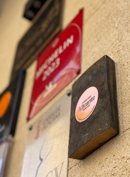 La DOP Alicante ha diseñado un nuevo elemento con el que quiere distinguir a los restaurantes con mejor oferta e información de Vinos Alicante DOP en el territorio. Una pieza cargada de historia y contenido, ya que se ha diseñado utilizando viejas duelas de toneles antiguos, marcados por el logo de la DOP Alicante que identificará a esos restaurantes más sostenibles.