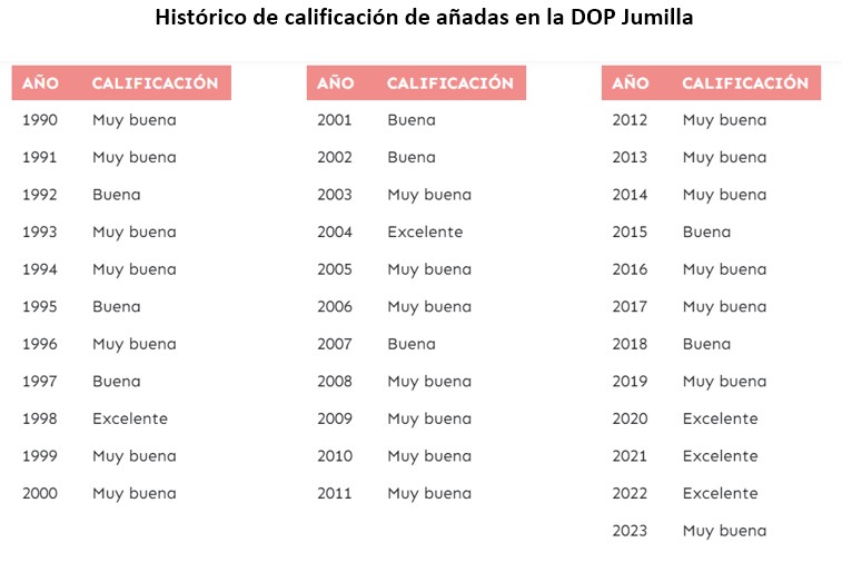 En total, la producción de uva de la campaña 2023-2024 alcanzó los 53.625.478 kg, un testimonio del esfuerzo y la adaptabilidad de los viticultores y enólogos de Jumilla frente a un año de adversidades climáticas. La valoración de los vinos de este año como muy buenos no solo refleja la calidad del producto final sino también la resiliencia y la habilidad de toda una comunidad vitivinícola para superar las condiciones más difíciles y transformarlas en productos de excepcional calidad. La identidad y el carácter de los vinos de Jumilla continúan consolidándose, ofreciendo a los amantes del vino experiencias ricas y memorables.