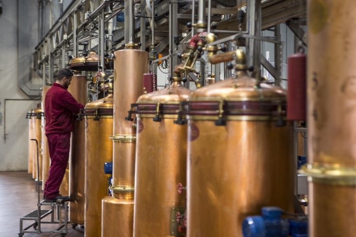 El compromiso de la destilería con la calidad empieza desde la recolección del orujo, un subproducto de la vinificación que tiene un papel esencial en el proceso. Las bodegas colaboradoras seleccionan y entregan el orujo de manera rápida, evitando que pierda frescura, algo fundamental para asegurar un aguardiente con buenos aromas y sabor. Una vez en la destilería, el orujo se somete a un cuidadoso proceso de fermentación, tras el cual está listo para ser destilado.