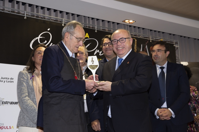 Uno de los momentos más destacados de la jornada fue la entrega de la distinción de Catador de Honor al prestigioso enólogo francés Jean-Claude Berrouet, conocido por su trabajo en Château Pétrus y su labor como asesor técnico de Bodegas Vivaltus. Durante una emotiva ceremonia, Berrouet, acompañado por el cónsul honorario de Francia en Castilla y León, Javier Artacho, expresó su admiración por la calidad de los vinos de Ribera del Duero. En su discurso, traducido por su hijo Jeff Berrouet, subrayó el compromiso de la región con la excelencia y su capacidad para posicionarse como líder en el panorama vitivinícola mundial.