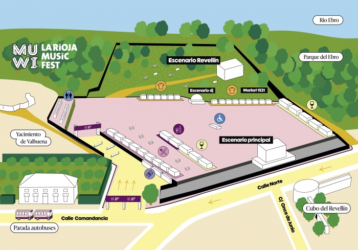 El nuevo emplazamiento, situado entre la calle Norte y el Frontón del Revellín, contará con tres escenarios, una zona vinícola con actividades que se detallarán próximamente, un espacio gastronómico y el MUWI Market, que reunirá a comercios y jóvenes diseñadores locales. Gracias al respaldo del Ayuntamiento de Logroño, el festival dispondrá de un escenario de mayor tamaño, mejor calidad acústica y una plataforma accesible para personas con movilidad reducida, aspectos que la organización considera un gran avance en la experiencia del público.
