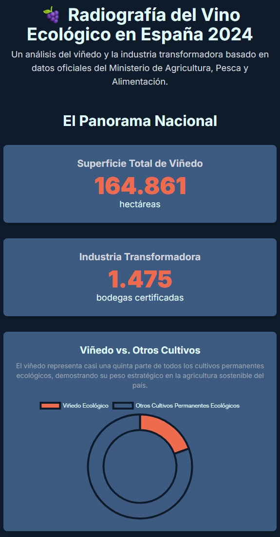 El documento del Ministerio concluye que el viñedo ecológico español mantiene una posición relevante dentro de la agricultura ecológica y que su cadena de valor se apoya en modelos regionales diferenciados. La información detallada por comunidades autónomas y provincias permite a los agentes del sector identificar oportunidades y ajustar sus estrategias a las características específicas de cada territorio.