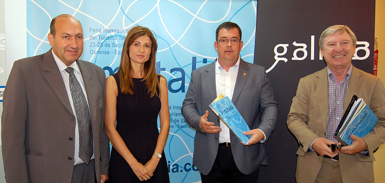 Durante el acto, Carmen Pardo firmó un convenio de colaboración con el director gerente de Expourense y director de Termatalia, Alejandro Rubín, para la financiación de la undécima edición de la Feria Internacional de Turismo Termal 'Termatalia 2011'.