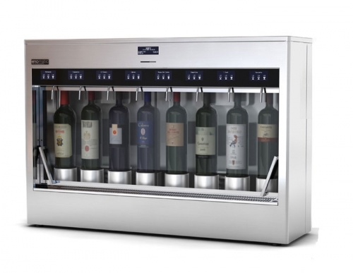 Con capacidad para ocho botellas en dos zonas de refrigeración independientes, cada dispensador permite conservar tanto blancos como tintos a sus temperaturas adecuadas. Además, para evitar que los vinos pierdan cualidades el sistema mantiene las botellas sin aire.