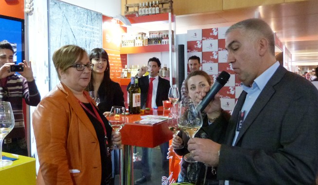 La presidenta de la Asociación de Sumilleres de Galicia Gallaecia, Mercedes González, fue la encargada de desgranar las cualidades del primer vino de Habelas Hailas, O Do Avó Marcelo, que estos días se estrena en el Forum Gastronómico de Santiago de Compostela.