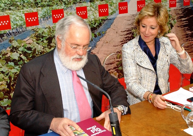 Este reconocimiento ha tenido lugar durante la presentación del libro “Las variedades de la vid en España”, realizada junto con la presidenta de la Comunidad de Madrid, Esperanza Aguirre.