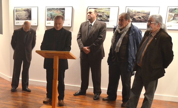 El autor del estudio, D. Luis Paadín, el presidente del Consejo Regulador de la Denominación de Origen Ribeiro, D. Luis Ángel Rodríguez, el director del Museo Etnológico de Ribadavia, D. Xosé Carlos Sierra, el concejal de Turismo de Ribadavia, D. José Prieto, y el delegado de la Xunta de Galicia en Ourense, Rogelio Martínez, inauguraron este miércoles la muestra "Lagares rupestres. Huellas de la historia vitivinícola en Galicia" que permanecerá expuesta en el museo Etnológico de Ribadavia hasta el próximo 3 de junio.
