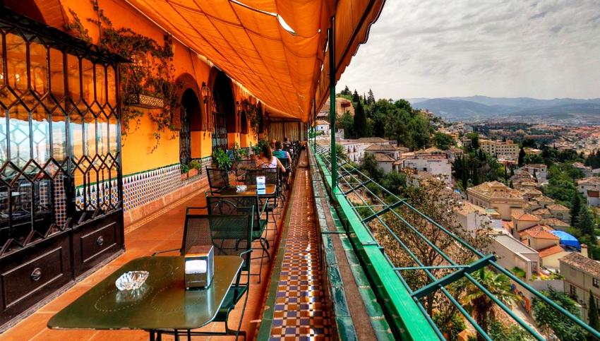 Un must de Granada ubicado en un paraje protegido por la Unesco que te cautivará gracias a su decoración, sus vistas, sus cócteles, su ambiente selecto y ese aura tan especial que envuelve a la terraza del segundo hotel en activo más antiguo de España.
