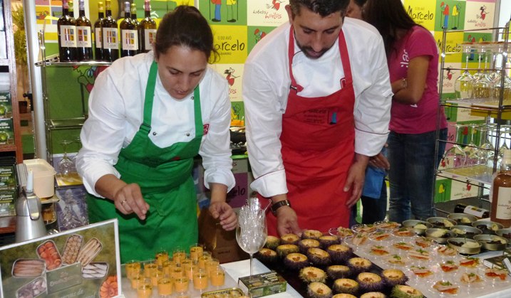 El vino O Do Avó Marcelo de Habelas Hailas y las conservas de Luís Escurís Batalla tuvieron el placer de ofrecer su materia prima para elaborar estas exquisitas creaciones con las que los cocineros sorprendieron los paladares de los visitantes de esta mañana en Salimat que pudieron degustar también Royal de erizos, frutos secos y yema y Chocos en tinta con ceviche de patata.