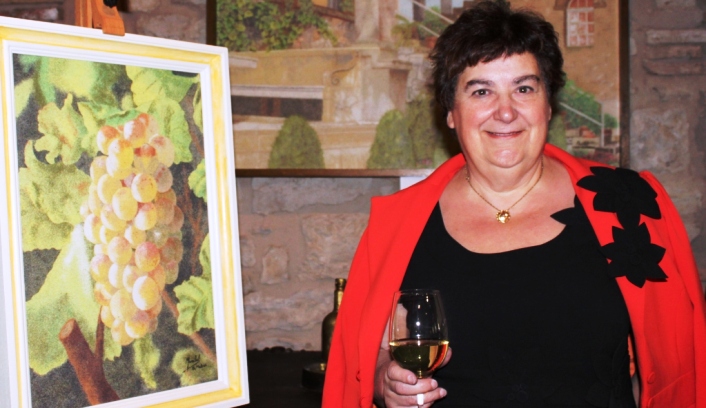 Autodidacta incorporada al mundo del arte a una edad madura, realiza un original tipo de pintura figurativa con arenas teñidas sobre una base de papel grueso con una capa de adhesivo.