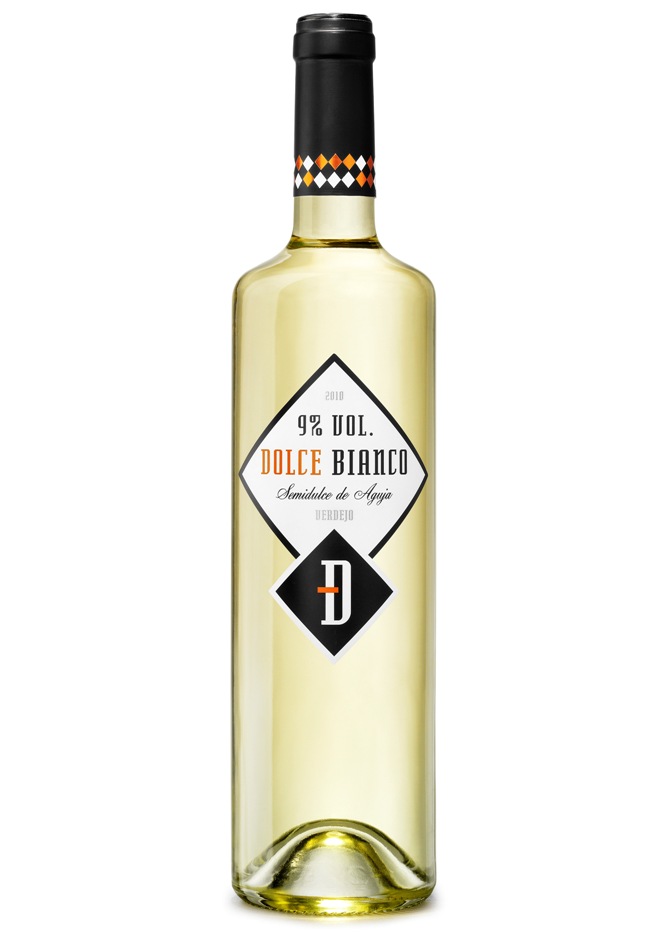 Dolce Bianco es un vino blanco semidulce, elaborado con uvas 100% de la variedad verdejo, al que se le ha añadido una suave y fina aguja.