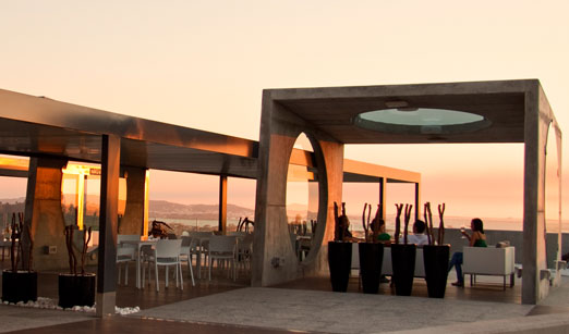 La terraza-lounge de Bodegas Martín Códax se encuentra en la colina de Burgáns, desde la cual se divisa el Valle del Salnés así como la Ría de Arousa, teniendo un enclave privilegiado para disfrutar de las puestas de sol veraniegas.