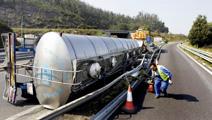 Según parece era un cambión cisterna que transportaba vino. El servicio de emergencias del 112 ha informado que, pese a lo aparatoso del incidente, no se han registrado heridos.