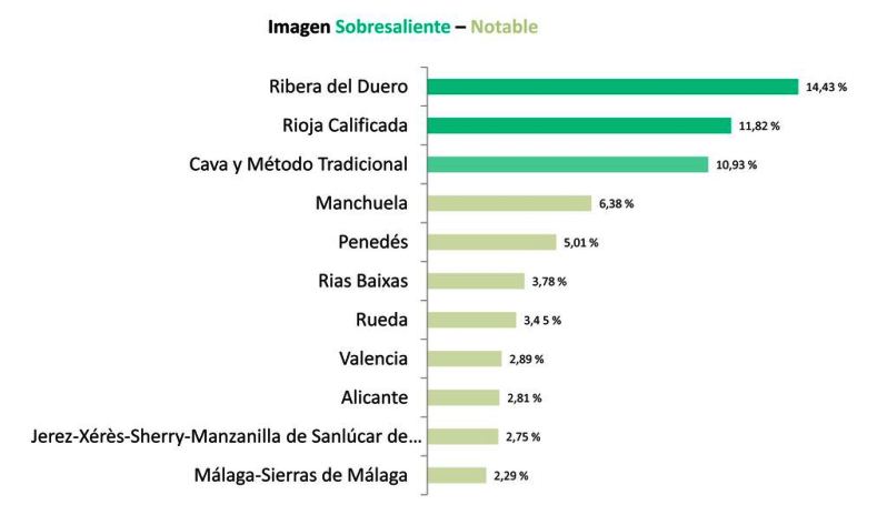 Los vinos adscritos a las Denominaciones de Origen de Ribera del Duero, Rioja y Cava copan el 37% de la información y de la imagen que sobre vinos y bodegas proyecta la prensa diaria española de papel, que, en la actualidad, es el medio convencional que más atención presta a la comunicación de la industria vinícola, aunque en progresiva competencia con los canales digitales en Internet.