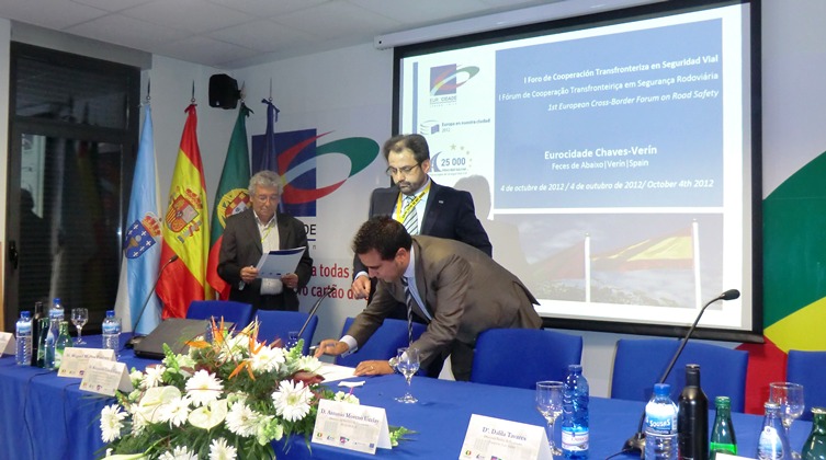 La sede de la Euro-ciudad Chaves-Verín se convirtió, en la jornada de ayer, en el espacio escogido por nueve entidades y municipios para firmar su preadhesión a la Carta Europea de la Seguridad Viaria, impulsada por la Comisión Europea con el fin de reducir el número de víctimas de accidentes de tráfico.