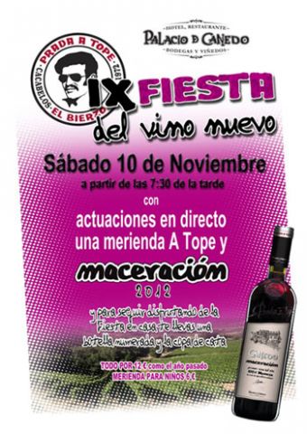 El sábado 10 de Noviembre a partir de la 7:30 de la tarde se celebrará en las Bodegas del Palacio de Canedo la IX Fiesta del Vino Nuevo de esta cosecha 2012.