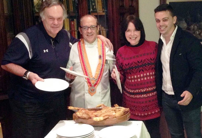 Le siguió un cochinillo asado de la corte y hornada de José María, marca de garantía Cochinillo de Segovia, para terminar con el ponche segoviano como postre.