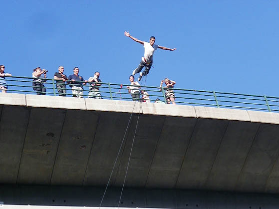En Ponte da Boga hemos hablado con todo un especialista en deportes de aventura, Javier Veiga, coordinador de actividades de anclajes y cuerdas de Desafío Ocio, una empresa joven con ganas de dar a conocer el turismo activo y de aventura en Galicia. Detrás de Desafío están también Esteban Troitiño (gerente y coordinador de actividades de equipo) y Julio Cobas (coordinador actividades acuáticas).
