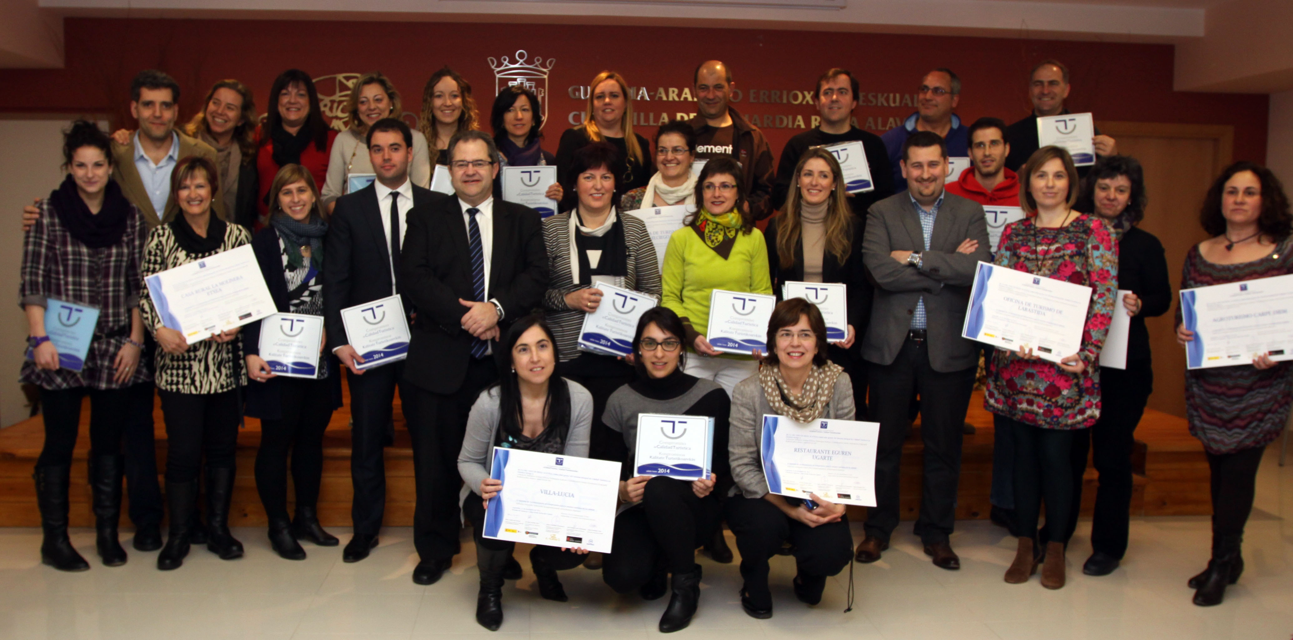 El Presidente de la Cuadrilla de Laguardia-Rioja Alavesa, Jokin Villanueva, y el Presidente de la Ruta del Vino Rioja Alavesa, Juan Manuel Lavín, han sido los encargados de entregar los distintivos, en un acto celebrado esta mañana en Laguardia. Para Villanueva, "los distintivos son un paso más que viene a confirmar la apuesta por la calidad del conjunto de empresas e instituciones de Rioja Alavesa como seña de identidad para atraer al turismo nacional e internacional".
