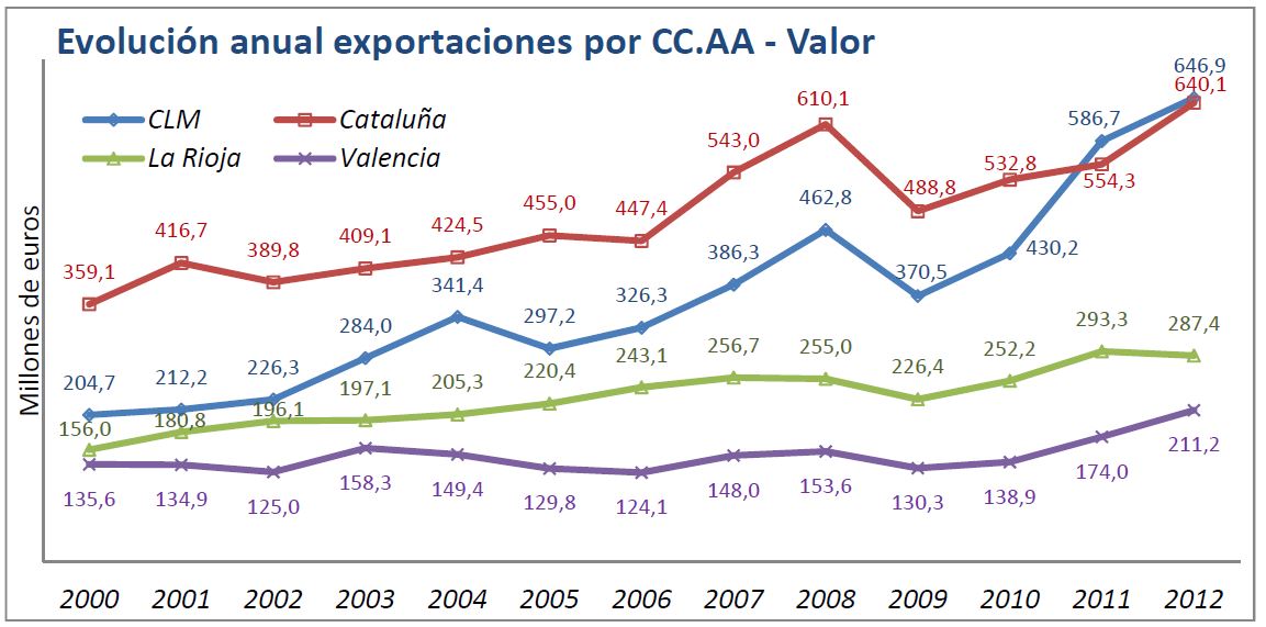 (IMAGEN)Evolución 2000 - 2012 de las principales comunidades exportadoras |