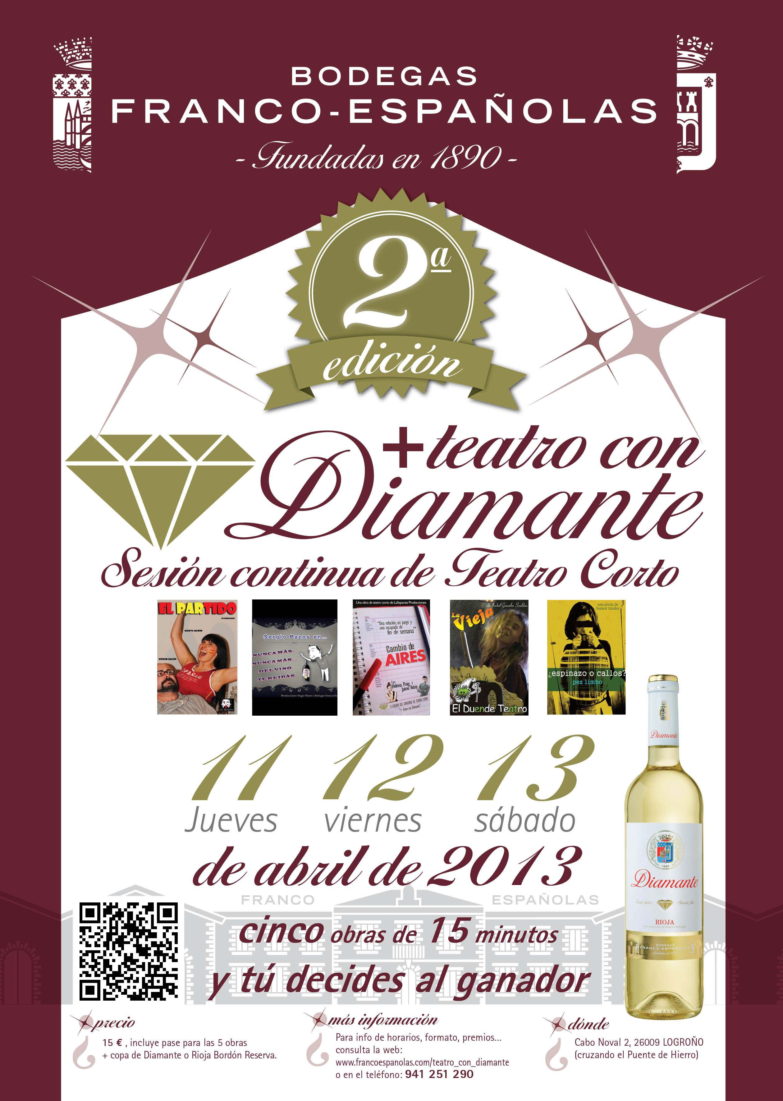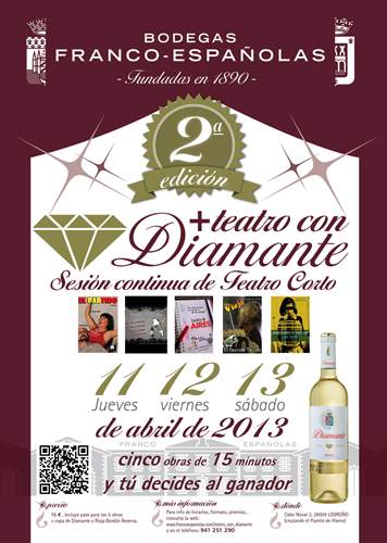 Bodegas Franco-Españolas organiza los días 11, 12 y 13 de abril la segunda edición de “+Teatro con Diamante” en sus instalaciones de la Calle Noval, 2 – Logroño.