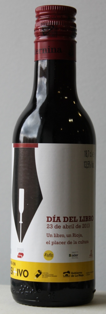 Como ha explicado la presidenta de la Asociación, Loli Magaña, en la presentación de esta campaña 2013, durante la semana del 23 al 27 de abril, los libreros riojanos obsequiarán a los compradores de un libro con un botellín de vino de Rioja tinto crianza 2009 de 185 cl. vestido con una etiqueta conmemorativa en la que figura el lema de la iniciativa: ‘Un libro y un rioja: el placer de la cultura’. Un lema que resume la pretensión de “conjugar dos culturas tan arraigadas en la sociedad riojana, como son la del vino y la de la lengua, en tanto que tierra originaria del castellano”, como ha recordado la presidenta de los libreros.
