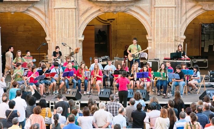 Hacer y sentir la música, compartir conocimientos con alumnos de otras Escuelas de Música, mejorar la técnica instrumental, trabajar y desarrollar un repertorio, conocer otras bandas y estilos de música, convivir, educar y, en definitiva, disfrutar de una experiencia única en un entorno inigualable como es Rioja Alavesa son los objetivos que se marca una nueva edición de la Txiki Txiki Big Band. Una fórmula de colonia musical única en España que volverá a ponerse en marcha entre los días 6 y 14 de Julio, enmarcada en el Festival Música entre Viñedos que se desarrolla en la comarca alavesa.