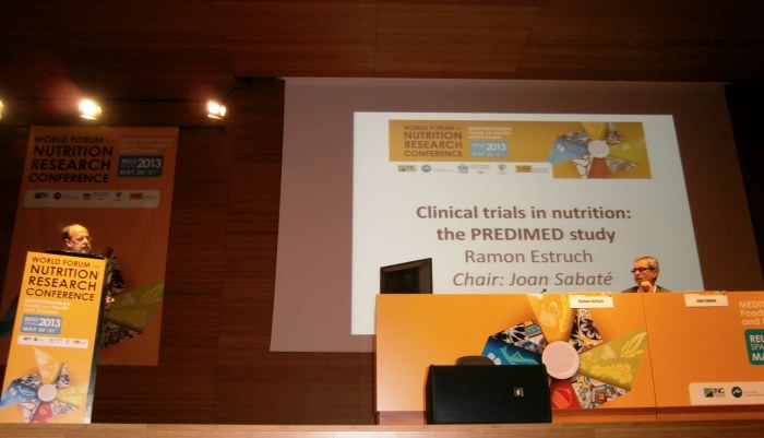 Una de las conferencias más interesantes del World Forum for Nutrition fue la del doctor Ramon Estruch, miembro del Comité Científico de FIVIN, quien presentó los resultados del reciente publicado estudio PREDIMED, que cerciora los beneficios de la Dieta Mediterránea para prevenir diferentes enfermedades cardiovasculares.