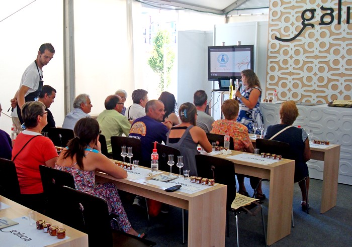 Así 25 personas tomaron contacto con los destilados de origen gallego en el stand itinerante que consellería montó para poder dar a conocer los distintos productos gallegos de calidad, como Mel de Galicia que ofreció la charla previa al turno de los aguardientes y licores de Galicia. La secretaria de este consejo regulador, Carmen Otero, fue la encargada de dirigir la cata en un entorno que consideraron de interés para el CRIIGG, “el norte peninsular es el mercado natural de nuestros destilados, que son conocidos y apreciados”, explicó.