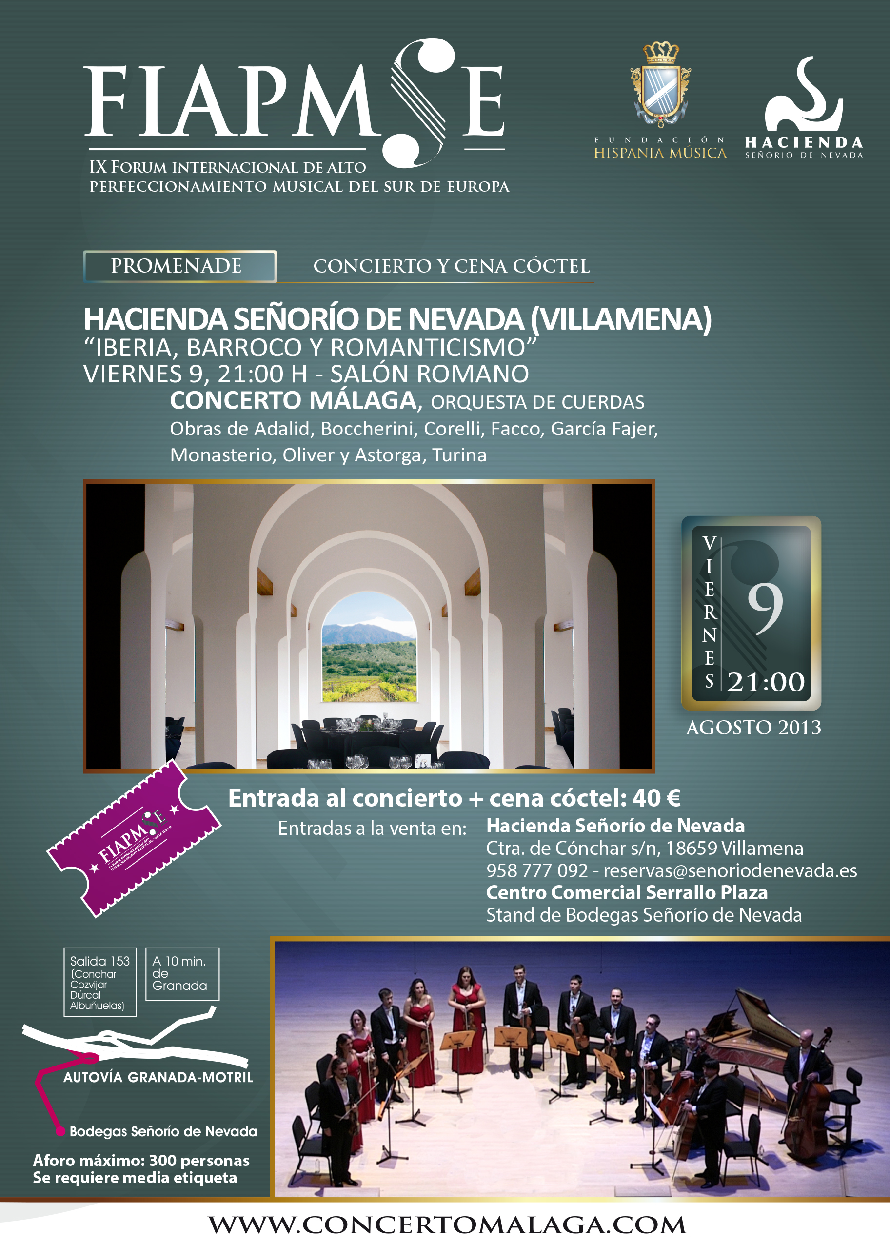 Junto con el IX Fórum Internacional de Alto perfeccionamiento musical del Sur de Europa (FIAPMSE) y la Fundación Hispania Música y con la colaboración de "Concerto Málaga", Señorío de Nevada organiza dos noches de conciertos de música clásica.
