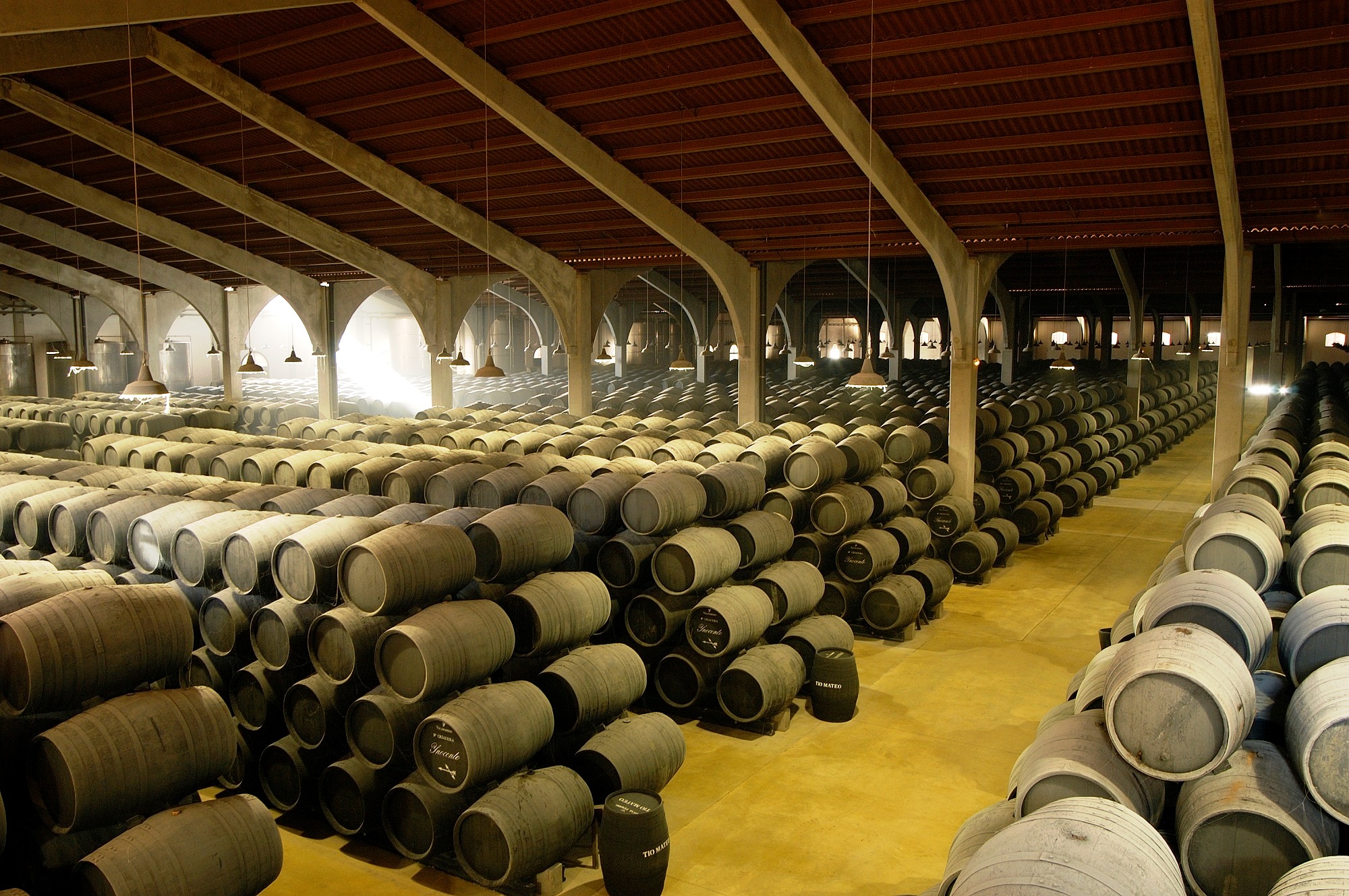 (IMAGEN)Espectacular sala de barricas de la bodega Valdespino |