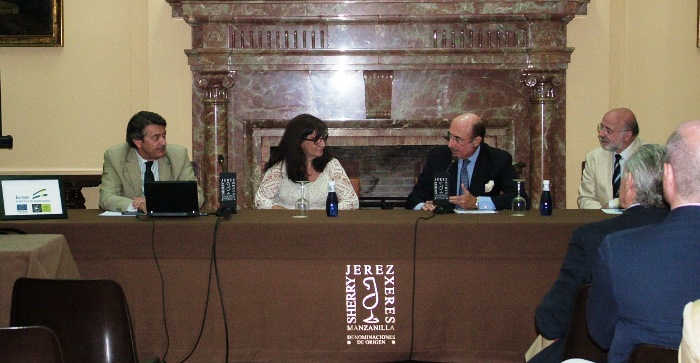 El coloquio contó con la intervención de Inés Durán, presidenta de FUPIA, que comentó los beneficios que acarrean para la sociedad la conservación y divulgación del patrimonio industrial. A continuación, Beltrán Domecq, presidente del Consejo Regulador, expuso los aspectos diferenciales y genuinos tanto de la viticultura como de la industria bodeguera del Marco de Jerez respecto a otras regiones vitivinícolas, tales como la arquitectura bodeguera, las técnicas de cultivo o de elaboración, el lenguaje o los oficios específicos del Marco de Jerez.
