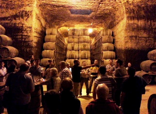 La tercera parte de la visita consistió en un recorrido por la cueva de crianza de la bodega donde además de los vinos Verum, envejecen holandas de vino (base del brandy) algunas datadas en el año 1912. La única cueva construida en el siglo XXI en Tomelloso, que además de ser la más grande de España, constituye un homenaje a los orígenes de una ciudad que llegó a albergar más de 2000 cuevas en las que los viticultores elaboraban sus vinos de manera independiente.