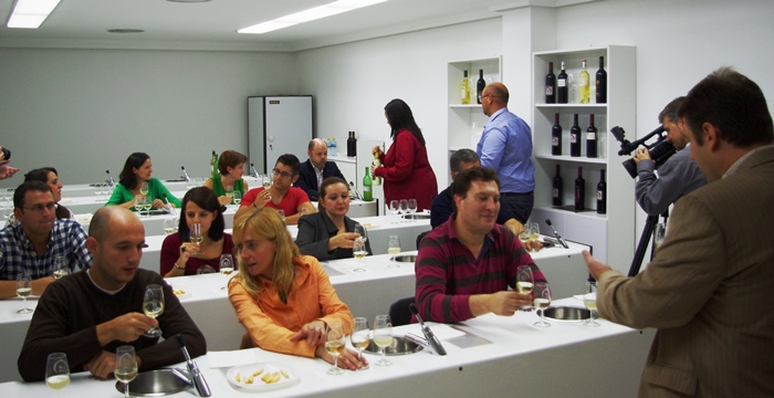 A través de las explicaciones de uno de los técnicos, los periodistas fueron captando las características organolépticas de los vinos y comparando colores, olores y sabores.