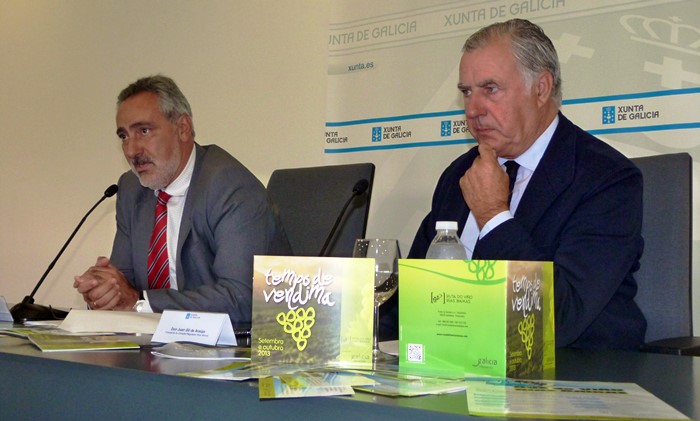 El delegado territorial de la Xunta de Galicia en Pontevedra, José Manuel Cores Tourís, acompañado del presidente de la Ruta del Viño Rías Baixas, Juan Gil de Araujo, realizó este jueves balance de la iniciativa 'Tiempos de Vendimia' que tiene como objetivo potenciar el enoturismo en la provincia de Pontevedra.
