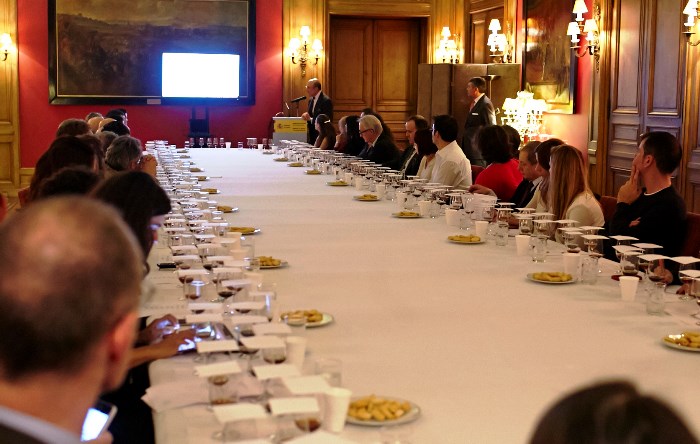Enmarcado en las actividades de formación del Consejo Regulador hacia los sectores de la restauración y de la distribución -sin olvidar a la prensa especializada- el acto se inició con una amplia exposición del Director del Consejo Regulador, Don César Saldaña, a la que siguió una interesante cata dirigida de cinco tipos distintos de vinagre, conducida por el Presidente del Consejo, Don Beltrán Domecq, quien ahondó además a continuación en las enormes posibilidades que ofrece el Vinagre de Jerez en todo tipo de cocinas. Tras la cata, que tuvo lugar en el impresionante salón de banquetes de la Embajada, el popular chef español José Pizarro ofreció a todos los asistentes un menú elaborado con distintos estilos de vinagre de Jerez.