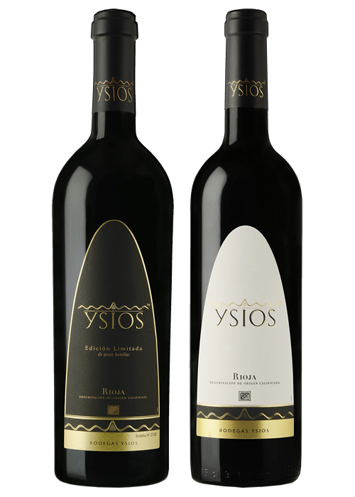 La etiqueta de Ysios Reserva 2007, vestida de blanco, introduce una nueva tipografía y un diseño limpio. La de Ysios Edición Limitada 2009 presenta un elegante color negro con tonos dorados en las letras que le otorga seriedad y elegancia. La contra etiqueta de ambos vinos recoge el característico perfil de la bodega otorgándole singularidad y autenticidad.