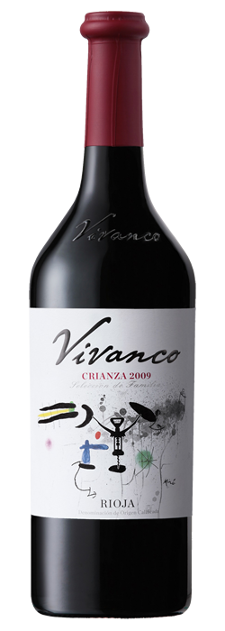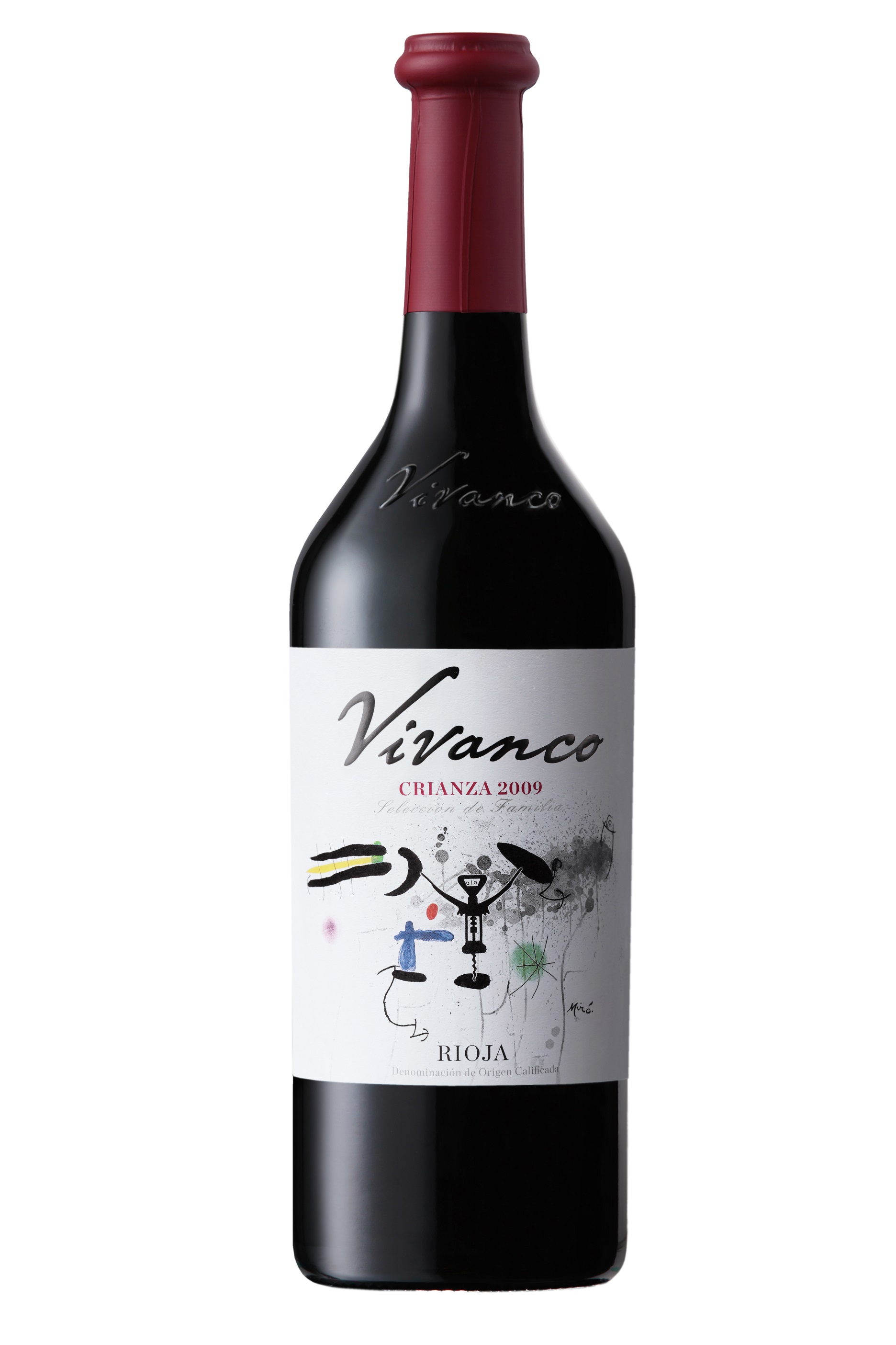 Botella y nuevo etiquetado, la Cultura del Vino como protagonista. Con el objetivo de ser fiel a su misión de Compartir la Cultura del Vino, la familia Vivanco patentó y mantiene para sus vinos una botella inspirada en una original de finales del s. XVIII. Como novedad en el nuevo etiquetado, Vivanco ha utilizado algunas de las obras expuestas en el Museo de la Cultura del Vino en Briones, de su Fundación, para vestir dos de sus principales vinos. Las obras, al igual que sucediera en el proyecto de producciones limitadas Colección Vivanco, mantienen una relación directa con el carácter de cada uno de los vinos. Así, la imagen del Vivanco Crianza la protagoniza la obra de Joan Miró, Le Troubadour. La frescura del trazo y el colorido utilizado por Miró, icono del surrealismo, encaja con la frescura, versatilidad y frutosidad del vino elaborado por Rafael Vivanco.