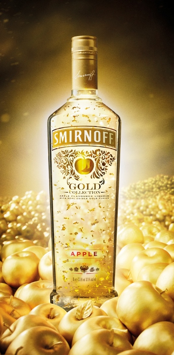 Smirnoff Gold Apple es el segundo lanzamiento de la colección oro de Smirnoff tras el éxito en 2012 de Gold Cinnamon, un destilado con sabor a canela.