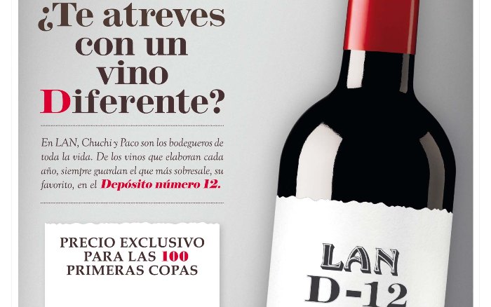Para motivar a los que no conocen LAN D-12, los bares y restaurantes que participan con LAN en este reto ofrecerán un precio exclusivo y especial para las cien primeras copas o a las primeras treinta y seis botellas de LAN D-12 2011 que se pidan en cada establecimiento unido a la acción.