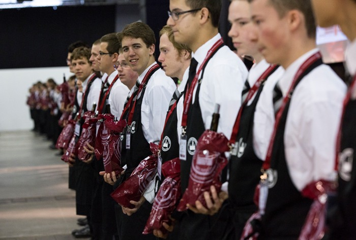 Sumilleres, compradores, importadores, periodistas y escritores del vino. En total 310 catadores de vino de 40 nacionalidades diferentes, se han reunido durante 3 días para evaluar el conjunto de muestras presentadas.