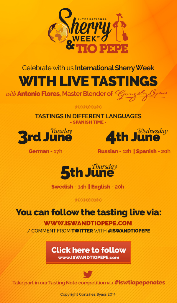 A través de la web www.iswandtiopepe.com, podrá seguirse, en directo y desde cualquier lugar del planeta, las notas magistrales que Antonio Flores revelará de los vinos de Jerez de González Byass. Asimismo, se podrá interactuar, preguntar al enólogo y enviar las notas de cata en Twitter con el hashtag #ISWandTioPepe.
