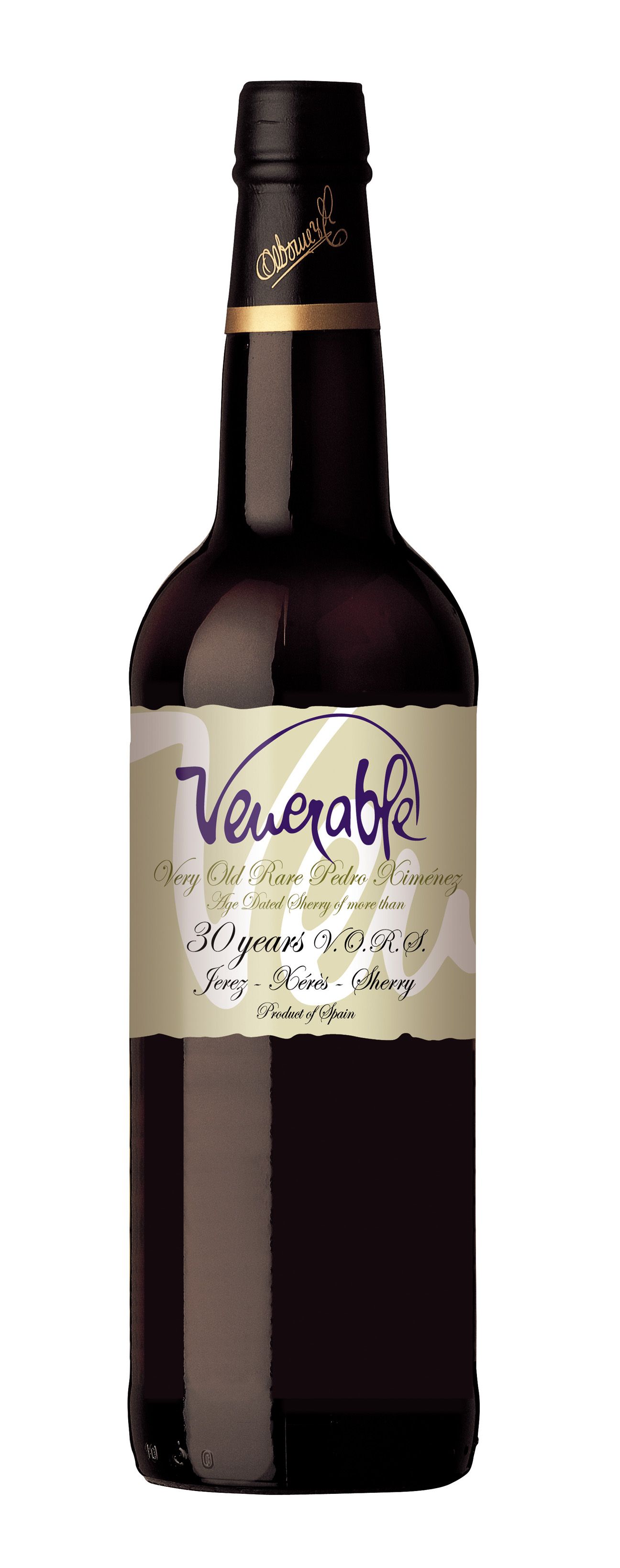 Elaborado con uvas 100% Pedro Ximénez y envejecido en bota de roble durante décadas siguiendo el tradicional sistema de soleras, Venerable es un vino de color caoba muy oscuro y ribeteado de tonos yodados.