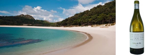 Ahora te invitamos a que te sientes sobre la cálida arena, mirando los intensos tonos de color azul que nos regala el atlántico, aspira el olor mezclado de mar y pinos, y deja llevar tu paladar hasta la combinación perfecta de un buen vino blanco gallego, en este caso un Gaba do Xil, un caldo de tono amarillo pajizo, muy sutil con aromas a frutas tropicales y cítricos. Un vino fresco con una textura más que agradable, que será el compañero perfecto en este primer paraje.