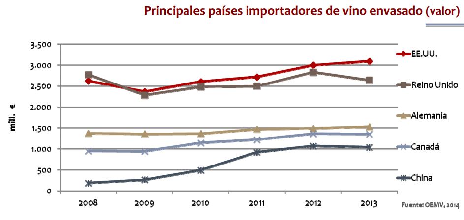 La exportación es una necesidad del sector vitivinícola debido a la débil situación del mercado interior y a la obligatoria diversificación de mercados para compensar riesgos.